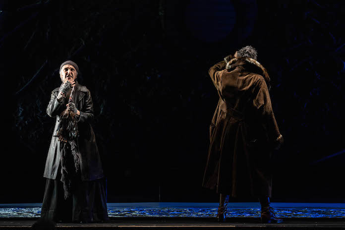 Tutta la scena, foro centrale compreso, a me ha ricordato, nella potenza visiva che evoca, il mondo ancestrale e obliquo di Hieronymus Bosch, le inquietudini e turpitudini umane che si riflettono, come un infernale comporsi di un universo delirante e visionario, sulla tela oscura, in cui si susseguono omicidi e gozzoviglie, egoismi ed eroismi, amori e stupri, feste e funerali, balli e canzoni, tutto un mondo maligno e ambiguo, che è la nostra vita riflessa sul palcoscenico teatrale, fino al luminoso tunnel finale, del tutto simile all’Ascesa all’Empireo che sta a Venezia. Visioni, metafore, in cui ritrovare noi stessi e il mondo nostro, in un perenne rinnovare significati e pregnanze adatti ai tempi, com’è dei veri capolavori. E c’è, certo, allora, la (non) scontata condanna della guerra, di tutte le guerre, quelle “calde” come le due mondiali e le infinite locali che hanno ammorbato e ammorbano l’aria del povero mondo nostro, e quelle “fredde”, come la prima, conclusa con la caduta del muro di Berlino, l’effimera pace durata ben poco, con gran felicità delle infinite madri Courage in giro per il mondo, e la seconda cui ci stiamo avviando, che stiamo già vivendo secondo alcuni, basata sulla conquista e il controllo del cyberspazio.