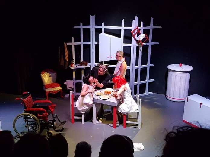 A volte pensa di farla fuori, ma la soluzione migliore diventa comprare un bel libro di magie e recitarne una per trasformare in carne ed ossa una delle due bambole – una mora e una rossa – che custodisce gelosamente. Inizialmente, la magia sembra non funzionare, ma poi… da solo che era si ritrova in doppia compagnia! E l’atmosfera sul palcoscenico cambia: dai toni tristi e malinconici del difficile rapporto tra madre e figlio a scene danzanti, ironiche, irriverenti e perché no, anche ammiccanti. Le due bambole – interpretate da Loredana De Flaviis e Consuelo Benedetti – non sanno neanche camminare e si muovono in maniera goffa sul palcoscenico, ma non sono affatto delle sprovvedute.