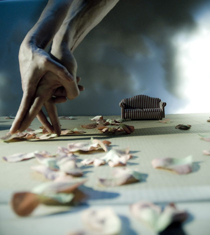 Così, lo spettacolo delle mani che danzano, il ballo insistito e sinuoso delle articolazioni, il rincorrersi inesausto delle luci e delle ombre, sono l’essenziale e fertile fonte della narrazione e, insieme, al tempo stesso, di commovente poesia; e, se nell’istante creativo in cui si genera, l’immagine delle mani protagoniste, inserite in un mondo fantastico e tuttavia dotato del chiaro e sereno nitore della realtà, viene proiettata sul maxischermo che occupa lo spazio scenico, il pubblico, nello stesso medesimo istante, assiste pure alla costruzione meticolosa del set teatrale: si crea, dunque una sorta di raffinatissimo metateatro che, obbedendo alla necessità di rompere l’illusione, di fatto, e paradossalmente, la (ri)crea e la rinforza, in un costante dialogo tra verità e pensiero, tra opacità e messa a fuoco, anzi, tra fuochi diversi e punti di vista che, a piacere, si rincorrono e vicendevolmente si soppiantano.