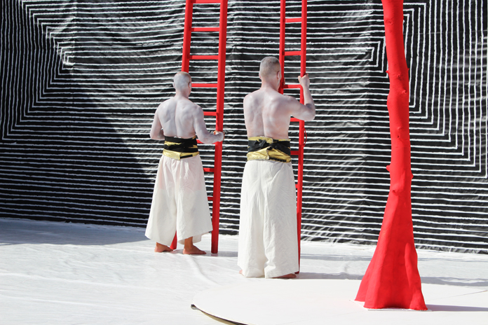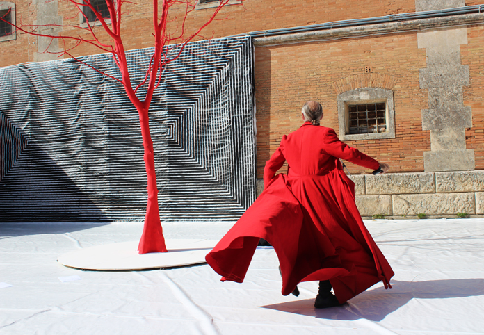 Il testo, come i personaggi, è scomposto ed aereo. Prevale un senso di quietezza e pace ritrovata, un’anamnesi di vita mancata, come la meravigliosa danza “sufi”, intreccio di gonne, ombrelli ed energie. Ancora il rosso e il bianco, essere e non-essere, uno e molteplice, immobile e diveniente. In un lieto ritrovarsi, senza mai toccarsi, oggi, immagine anche dei nostri tempi forzatamente isolati.