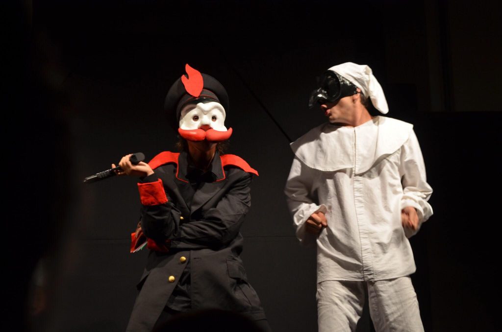 Ora sappiamo tutti autoctoni e non quanto Napoli sia legata (a volte in maniera un po’ troppo stretta e asfissiante) alla maschera di Pulcinella, che della città incarna la parte più sentimentale, sfaticata, macchiettistica e fondamentalmente… vera. Perciò l’idea di andare a vedere l’ennesima messa in scena di un Pulcinella armato di mandolino che canta quanto è bello non far niente non mi attirava troppo – lo confesso – allo stesso tempo però l’esperienza mi ha insegnato che qui da noi per i teatri funziona un po’ come nei club berlinesi: se vai in quelli con grandi nomi in cartellone finirai per trovarti di fronte a caroselli patinati e spenti, mentre se entri in posti piccini, bui, con nomi poco noti assisterai a spettacoli che avranno ben valso qualche ora del tuo tempo.