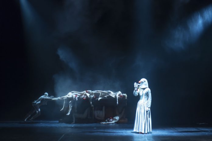 La sera della prima entro al Teatro Politeama scettica e con un po’ di timore di non riuscire ad arrivare fino alla fine dello spettacolo (cosa che, lo anticipo, accade a molti spettatori che nel bel mezzo della rappresentazione vanno via), ma non voglio partire sconfitta, mi siedo al mio posto e già capto nell’aria una strana tensione, la platea è pienissima e siamo tutti lì in attesa che si alzi il sipario.