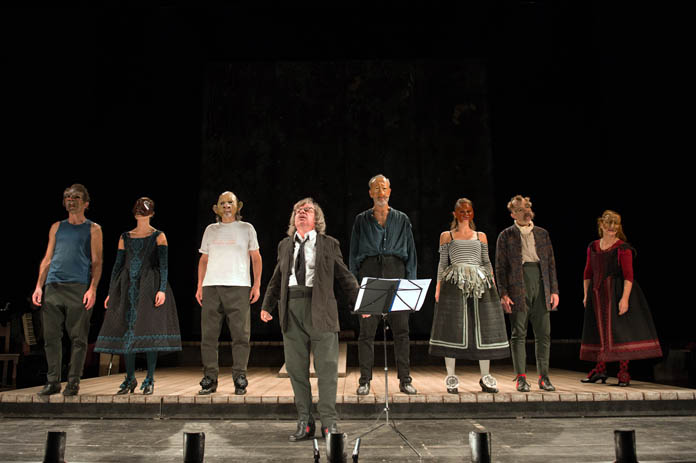 I Virtuosi del Carso, che con la loro musica e le loro percussioni affiancano sempre Paolo Rossi nelle sue performances, condiscono, sottolineano, ritmano l’intera pièce, grazie ai canti, ai jingle, alle canzoni originali di Gianmaria Testa. E poi gli attori, che formano una squadra assortita e talentuosa, in primis Lucia Vasini, Fulvio Falzarano e Mario Sala.