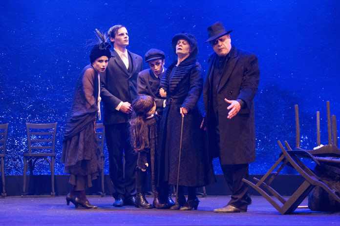 La famiglia in nero composta di un padre e di una moglie e quattro figli di due madri attendono che il capocomico muova su di loro il testo. Egli, preciso e austero Carlo Valli, presenta la madre, Marta Nuti e i quattro figli, la fisionomia dei quali premia l’energia scenica della figliastra, una davvero bravissima Selene Gandini, e la giusta caratterizzazione del giovane, Alberto Mariotti. Bene l’affiancamento a lui dell’attore di ottima presenza scenica Roberto Mantovani.