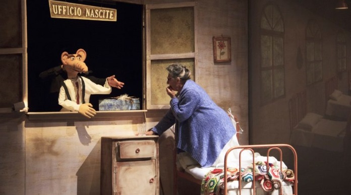 Proiezioni, un letto, un comodino, una finestra sul botteghino nascite, creano la scena, i pupi di Raffaele Scarimboli la movimentano e rendono appetibile ai più piccoli e i costumi di Cristina Bari, ben curati per la signora, in particolare quello dei saluti, completano il quadro agli occhi degli spettatori sempre attenti. Una regia senza esitazioni quella dello stesso autore della pièce, Damiano Nirchio, già vincitore del premio Eolo Awards, ricca di trovate sceniche, vuoi di comicità, vuoi di tenerezza, che insegnano a trovare la favola negli “Ahia!” del vivere, quella stessa, che fa di uno spettacolo da una morale interessante, un accattivante intrattenimento per grandi e piccini.