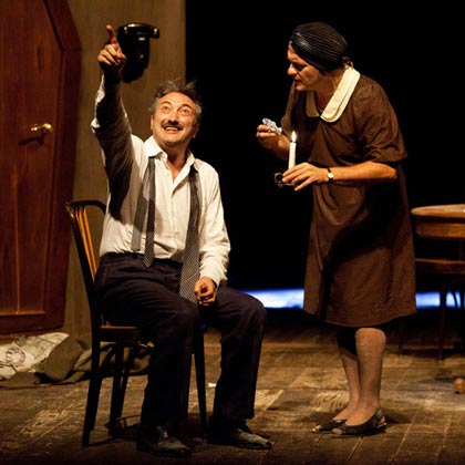 “La vita è un’illusione”, recita Raffele Galliero, tenendo in mano una candela. Ma sia nel prologo, sia nella vicenda dei fratelli Rocco e Lucia Capasso, sia nel l’esilarante e stupendo Pericolosamente, che segue Dolore sotto chiave, la parola d’ordine è: semplicità. Una semplicità arricchita dal fenomeno musicale della lingua napoletana, che sembra una melodia, ben arrangiata dagli intensi attori, Tony Laudadio, Luciano Saltarelli, Giampiero Schiano. Nella sottrazione, essi amplificano tuttavia il senso, il dolore, la perdita e, nell’ultimo sketch, l’allegria più spinta, come un piacevole prurito che non va via.
