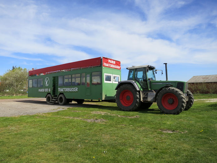 Per una traversata senza preoccupazioni, vi consigliamo di percorrere la Låningsvejen, l’unica strada pubblica che collega l’isola alla terraferma, sul Mandø Bus o Traktorbus, un autobus davvero particolare, trainato da un trattore, con partenza dal Wadden Sea Centre: un’esperienza insolita e divertente!
