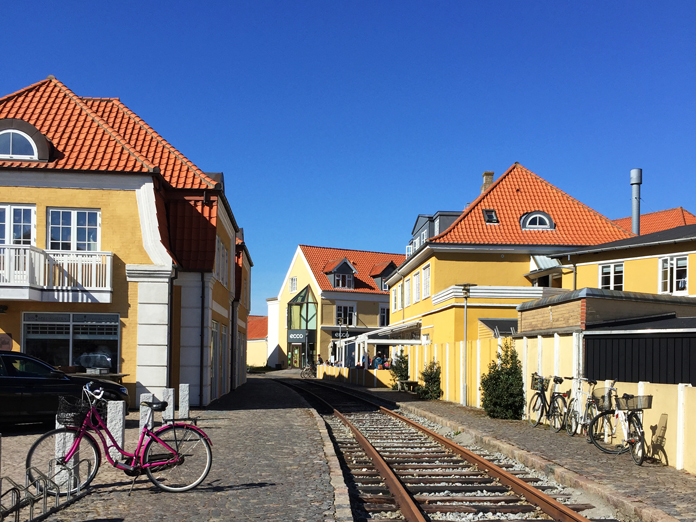 La piccola cittadina di Skagen è oggi un pittoresco paese di villeggiatura per molti danesi e turisti stranieri, con le tipiche case gialle e i tetti arancioni che spiccano nelle giornate limpide. Una vera tavolozza d’artista che sconfina nei toni più opachi delle dune, dal verde al giallo dell’erba secca, alle ombre scure sulla sabbia bianca, fino a gettarsi nell’azzurro del mare. Un punto di incontro a Grenen (leggi sotto), non solo letterale, tra il Mar Baltico e quello del Nord, che qui si scontrano senza mescolarsi, due tonalità di blu e una spuma bianca in mezzo come una barriera.