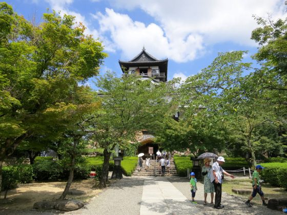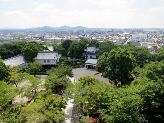 Il torrione centrale, i cui 19 m sono scanditi da 4 livelli di tetti ricurvi, è sopravvissuto a grandi calamità, quali l’invasione nel 1584 di Toyotomi Hideyoshi con i suoi 120.000 uomini, bramosi di sconfiggere lo Shogun Tokugawa Ieyasu ed ottenere così il controllo del Giappone; o ancora il terremoto del 1891 che distrusse parzialmente il castello: il mastio di legno si è conquistato in ultimo il titolo del più antico del Giappone. Durante la visita, lasciatevi affascinare dal panorama che si ammira dall’ultimo piano.