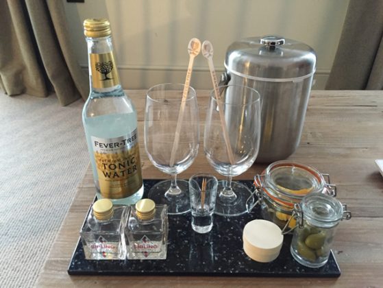 Ma ciò che distingue l’hotel è la magnifica accoglienza, ad arte direi: un aperitivo di benvenuto in camera, con gin tonic impreziosito da spicchi d’arancia, olive e arachidi.