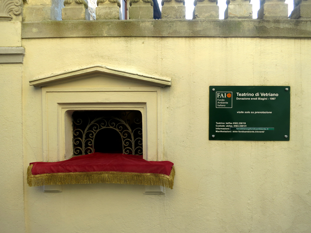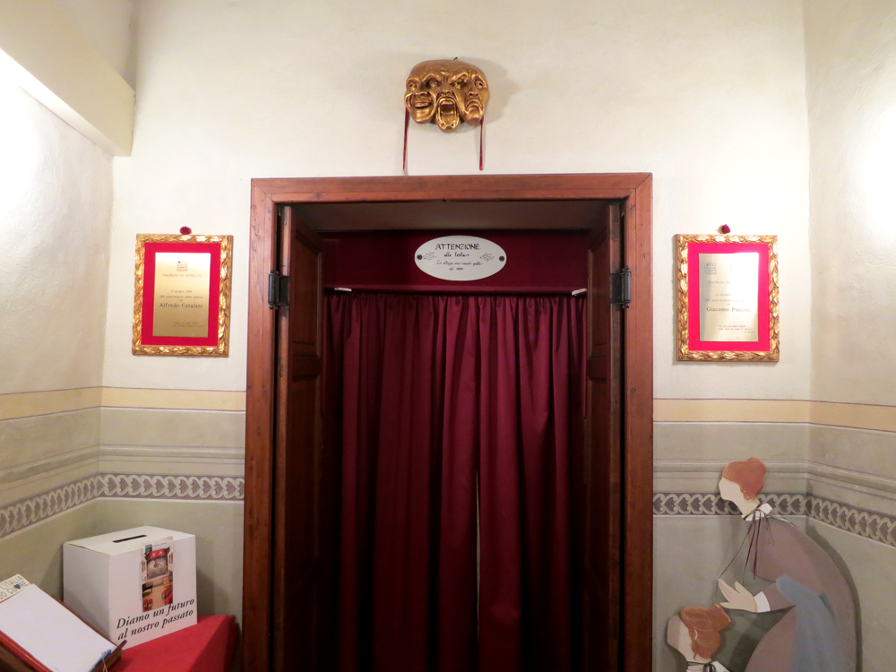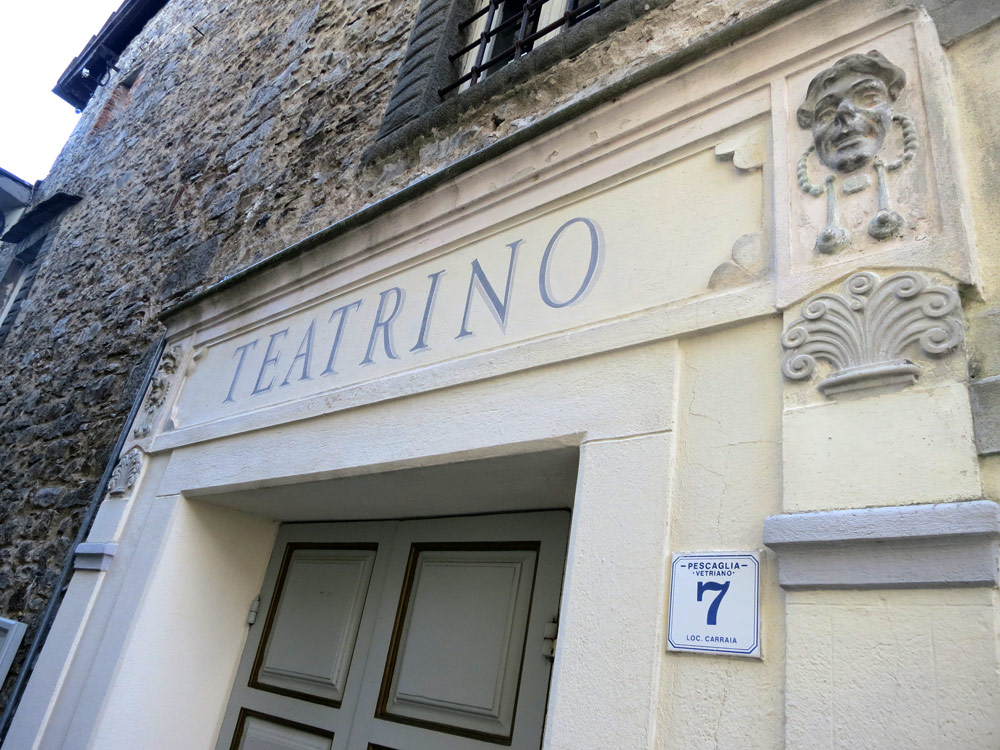 Accreditato nel Guinness World Records Book, il teatrino in miniatura ci accoglie con stupore, in una piccola strada acciottolata pedonale, circondato da abitazioni in pietra: sul piccolo portone, elegante, al n.7 Pescaglia – Vetriano Loc. Carraia la scritta Teatrino fa bella mostra di sé, affiancato da una finestrella adibita alla vendita dei biglietti ed un balcone, ‘illuminato’ da un simpatico gnomo in pietra. Un gatto solitario ci fa strada mentre attendiamo Cristina, la custode e guida speciale di questo luogo davvero unico.