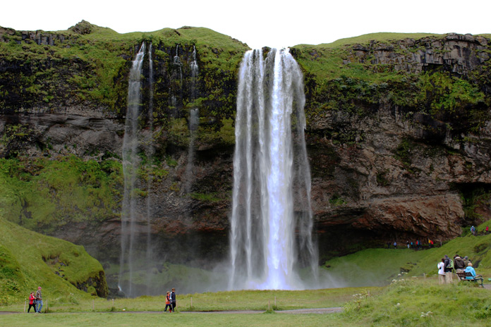 Rimontiamo in macchina, per ammirare la Seljalandsfoss, la magnifica cascata che con un salto di 60m si getta in un laghetto verde: premunitevi di k-way e pantaloni impermeabili per osservare la magnifica cascata anche da dietro il salto d’acqua.
