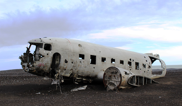 Dopo caffè e hot dog, ci catapultiamo su un set alla Lost sulla spiaggia di Solheimasandur dove nel 1973 l’aeroplano Douglas DC-3 fu costretto ad un atterraggio di emergenza: il relitto svetta improvviso tra le piatte dune di sabbia nera, dopo una lunga passeggiata di circa 40 minuti capace di minare la vostra sicurezza circa la sua esistenza. Ma non abbiate paura: lasciatevi guidare dalla frotta di turisti e non sbaglierete strada!