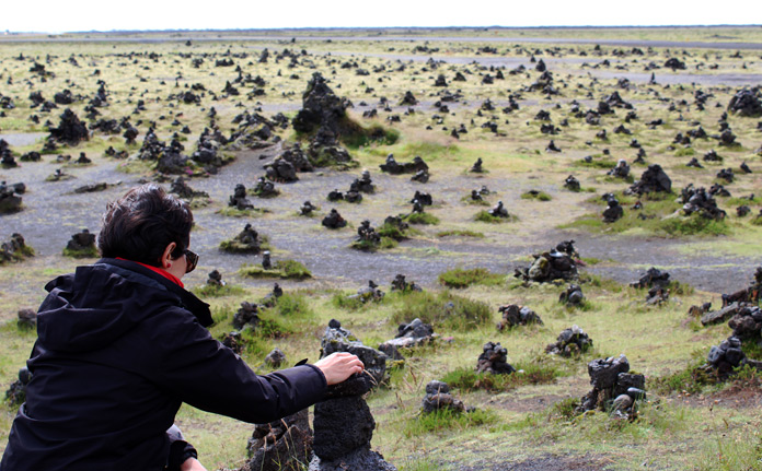 Ripresa la road n.1, facciamo una breve sosta a Laufskalavarda, la distesa suggestiva di tumuli di pietra, simbolo di buona fortuna, nel sito storico che ospitava una grande fattoria prima della distruzione portata dall’eruzione del vulcano Katla nel 894. Anche noi, come di rito, mettiamo una pietra portafortuna su un tumulo e ci apprestiamo ad entrare nella regione dei Sandar, le pianure sabbiose di origine glaciale, diretti verso Kirkjubaejarklaustur, detta più semplicemente ‘Klaustur’.