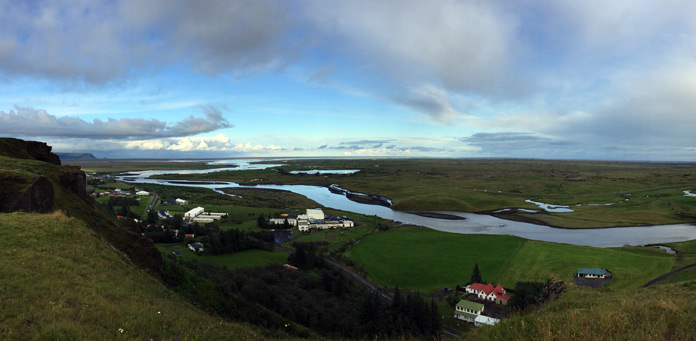 Arriviamo così a Klaustur, dove una gradinata scavata nella collina posta alla fine del villaggio ci porta sulla cima della Systrafoss (cascata delle sorelle), una doppia cascata sulla cui sommità si ammira un bel panorama del villaggio e del Landbrotsholar, un vasto campo punteggiato di piccoli crateri verdi nati dall’arrivo della lava nelle zone paludose. Da qui si può procedere con un trekking lungo il lago Systravatn, dove un tempo si facevano il bagno le suore del convento, fino alla Stjornarfoss e al Kirkjugolf, un lastricato basaltico naturale.