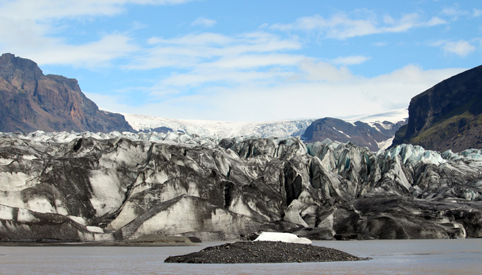 Riprendiamo la 1, direzione Skaftafell, lo splendido Parco Nazionale di Vatnajökull, che ospita vedute mozzafiato su cascate, ghiacciai e vette aguzze. Noi scegliamo come primo itinerario quello più semplice e battuto che ci conduce in meno di un’ora ad ammirare tutta la maestosità dello Skaftafellsjökull, l’immenso ghiacciaio punteggiato di sabbia lavica. Quindi torniamo indietro e con un nuovo breve sentiero di 1,8 km saliamo fino alla Cascata nera più fotografata d’Islanda, la Svartifoss, che si getta con un salto di 12 m tra lucide colonne di basalto nero.