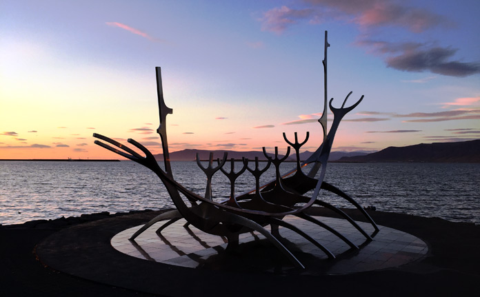 Il ritorno a Reykjavik è per le 22.30/23.00, soddisfatti da una tale bellezza della natura, vera perla degli Altopiani: ad accoglierci uno spettacolare tramonto sul porto di Reykjavik, che illumina la sfaccettata Harpa e tinge di rosa il Viaggiatore del Sole (Solfar) di Jon Gunnar Arnason, la splendida scultura che ricorda nelle sue semplici linee una barca protesa verso l’Oceano.