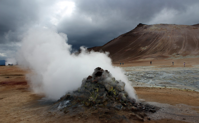Dopo l’incontro con canyon e piccole cascate, ci inoltriamo nella regione del lago Myvatn, esplorando la lunare Hverir, dalla bellezza ultraterrena con il suo suolo color ocra, i soffioni, le fumarole e le pozze di fango bollente, dirigendoci quindi, tra terre fumanti, celestiali bagni naturali e campi di lava, verso Skutustadagigar, a sud del lago.