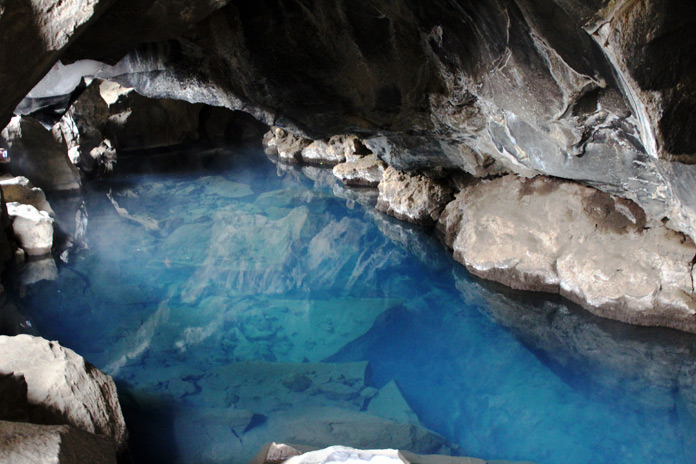 Salutiamo il bel cottage ed andiamo alla scoperta dell’enorme campo di lava di Dimmuborgir, dove nere formazioni ricordano chiese e castelli, formando pinnacoli ed archi. Quindi visitiamo la Grjotagja, la grotta piena di splendida acqua azzurra e trasparente a 45°, diventata famosa grazie a Trono di Spade: è qui infatti che scoppia la passione tra Jon Snow e Ygritte. Vi si accede con una stretta fessura nella roccia, occhio a star sufficientemente bassi per evitare brutti bernoccoli.