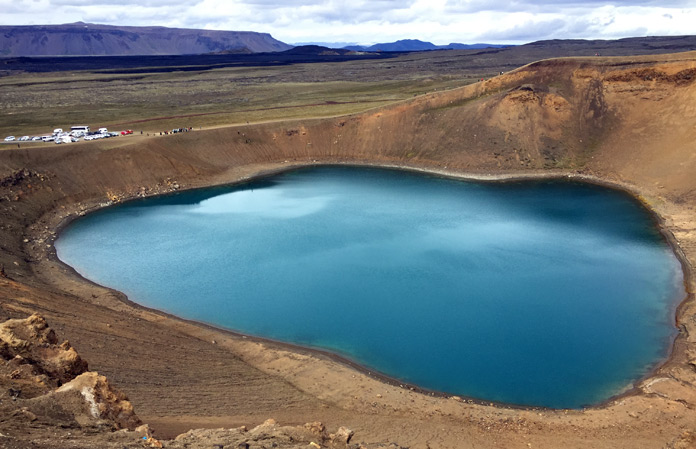 Non possiamo salutare Myvatn senza una visita a Krafla, la regione vulcanica attiva tra le più pericolose, con i suoi immensi campi di lava, i più imponenti d’Islanda, le fumarole, i crateri, una centrale elettrica geotermale che rifornisce tutta la zona di acqua calda e dall’inconfondibile odore di zolfo e Viti, il cratere che custodisce una pozza d’acqua verde dove è vietato fare il bagno.