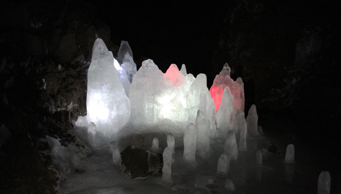 Nel pomeriggio raggiungiamo il punto informazioni di Myvathn per andare alla scoperta della grotta di Lofthellir con un tour a dir poco elettrizzante organizzato da Saga travel. Dopo circa 40 minuti in fuoristrada e una passeggiata di 20 minuti tra spettacolari campi di lava ed una fitta pioggerellina, raggiungiamo la grotta: muniti di elmetto con luce e stivali di gomma, da veri speleologi, strisciamo lungo un pertugio aiutati da alcune funi ed entriamo nella grotta, dove ci attendono percorsi carponi e scivolate su lastre di ghiaccio, per raggiungere meravigliose sculture di ghiaccio che la nostra guida ci fa apprezzare in pieno, ora con giochi di luce ora con un buio completo che ci permette di porre attenzione sui magici suoni dei cristalli. Un’esperienza davvero unica, ma che consigliamo solo a chi è in ottima forma fisica, non soffre di claustrofobia ed è munito di giacca, pantaloni e guanti caldi e impermeabili per poter scivolare, arrampicarsi e strisciare sul ghiaccio senza il rischio di bagnarsi e ghiacciarsi (dentro la grotta siamo sugli 0 gradi). Sconsigliato portarsi una macchina fotografica ingombrante: rischiereste di non riportarla integra indietro.