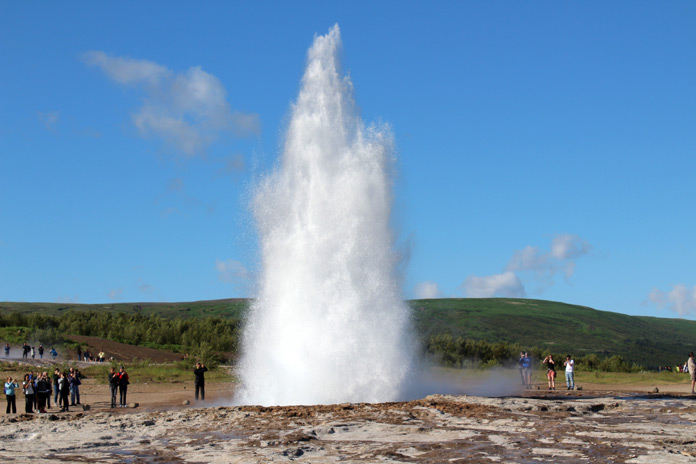 Seconda tappa Geysir (ovvero ‘eruzione’), la sorgente calda da cui tutti gli altri geyser del mondo hanno preso il nome: rimasto attivo per oltre 800 anni, oggi dà pochi segni di vita. Il vicino Stokkur però con intervalli di 5/10 minuti vi stupirà con getti dai 15 ai 30 metri: se volete evitare una bella doccia, ammiratelo a debita distanza.