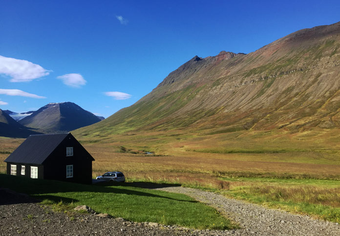 In serata raggiungiamo la bohemienne Seydisfjordur, con le sue casette di legno colorate risalenti all’Ottocento, importate prefabbricate dalla Norvegia, il suo bel lago dove si affacciano e riflettono le abitazioni colorate e le montagne innevate, e Blaa Kirkjan, la Chiesa Blu: passeggiando per le sue stradine artistiche, l’impressione è quella di trovarsi su un set cinematografico, con punte surreali per l’estate di comignoli da cui esce il fumo caldo di caminetti accesi.