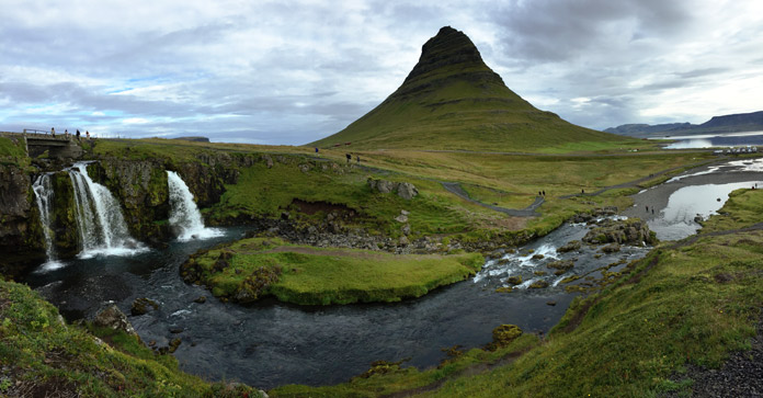 Quindi raggiungiamo Olafsvik, con una sosta obbligatoria allo spettacolare Kirkjufell, il famoso monte a punta tra i più fotogenici d’islanda, che si erge sullo sfondo della Kirkjufellsfoss, una cascata anch’essa tra le più fotografate.