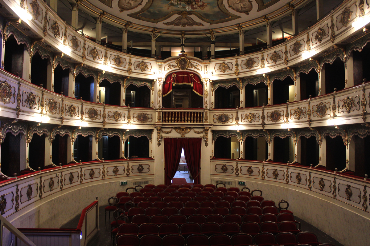 Così, per l’inaugurazione, si accontentarono di mettere in bella mostra sul palco il busto del maestro realizzato da Giovanni Dupré, che oggi fa bella mostra di sé in cima allo scalone da cui si accede. Il teatro si può visitare solo con una visita guidata della durata di circa un’ora, che vi permetterà di scoprire i suoi interni, di cartapesta in quanto più economici e fonoassorbenti, le decorazioni di Giuseppe Baisi e Alessandro Malpeli, i bellissimi affreschi del soffitto, raffiguranti la Commedia, la Tragedia, il Melodramma e il Dramma romantico, di Isacco Gioacchino Levi. Il Teatro, che era dotato fin dall’origine di ogni più funzionale struttura, è stato recentemente restaurato, messo a norma e riaperto; la sua capienza è di circa 300 persone.