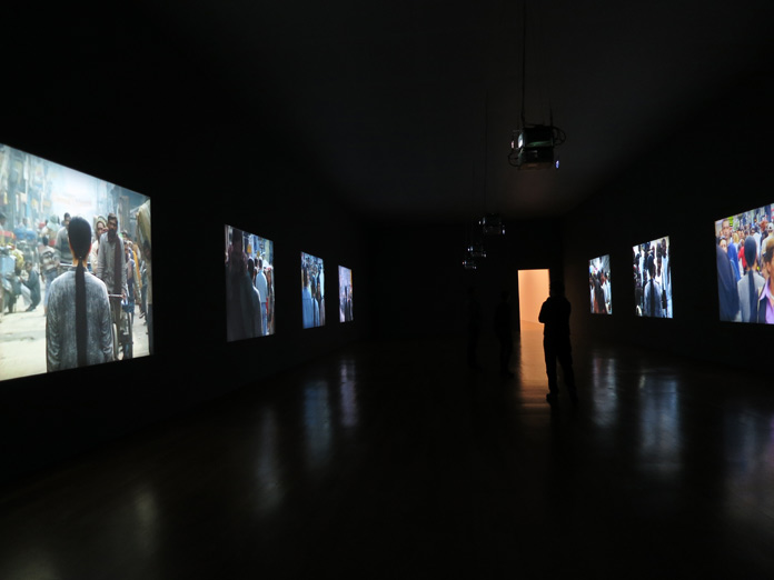 Tra le opere presentate troviamo video installazioni come A Needle Woman (1999-2001) in cui l’artista viene ripresa davanti a ondate di folla in otto metropoli diverse, dalla Cina all’America, passando dall’India; Thread Routes – Capitolo IV (Cina) dal suo ultimo film 16mm Thread Routes, girato in sei capitoli, dove l’artista intreccia un impressionante arazzo di tradizioni tessili e culturali attingendo da molteplici parti del mondo. Ed ancora l’immenso Lotus: Zone of Zero (2017), sorta di mandala composto da oltre duemila lanterne, a forma di fiori di loto, che si espandono verso l’esterno su uno spazio strutturale circolare, un invito all’immersione in un momento di pace e contemplazione, dove risuonano canti tibetani, gregoriani e islamici in una fusione armonica di religiosa spiritualità. Ed infine A Laundry Woman colorate stoffe appese ad asciugare, o unite in sfere colorate, simbolo dello stretto legame fra culture diverse. Un percorso che si fa rituale, e avvolge in un sottile filo il visitatore verso culture altre da sé che affascinano e incantano, per abbattere pregiudizi e ogni forma di razzismo.