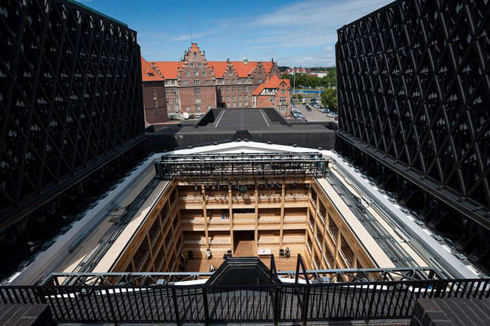 Il massiccio edificio in mattoni neri sorge quasi minaccioso davanti ai suoi visitatori ma non temete: esso prende vita come scatola segreta i cui materiali di costruzione rappresentano un’eco dell’elemento dominante della storica Danzica, ovvero le sue chiese gotiche in mattoni, in questo caso neri, con un coperchio che si alza ed apre, svelando al suo interno un prezioso e semplice edificio di legno senza tetto, come i classici teatri elisabettiani a cavallo fra XVI e XVII secolo. Si tratta di una vera rarità al di fuori dell’Inghilterra, un lavoro frutto dell’originale design del professor Renato Rizzi di Venezia, capace di fondere l’idea shakespeariana con tecnologie delle più contemporanee ed avanguardistiche, che ha preso corpo nel 2008.