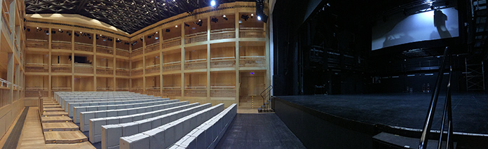 Il teatro sorge dunque simbolicamente dalle fondamenta del suo predecessore, come la più antica reliquia materiale di un teatro pubblico di un valore incommensurabile, ma è funzionalmente e architettonicamente figlio del XXI secolo, con interni squadrati, open space ed un palco e platea completamente smontabile, capace di essere assemblato secondo molteplici esigenze (ora spazio completamente aperto, ora teatro classico, ora anfiteatro, ora col tetto chiuso, ora aperto).