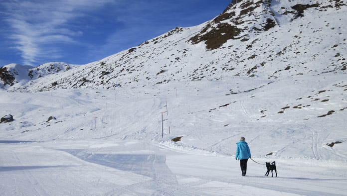 Dopo aver indossato adeguati scarponi da neve, andiamo ad ammirare i magici paesaggi innevati dell’Aretsch Arena con una rilassante passeggiata lungo il sentiero principale (di circa 72 km) circondati dall’aria fresca e pungente ovattata dalla neve, mentre dietro di noi le punte innevate si tingono del rosso infuocato del tramonto, un’immagine che fa innamorare.